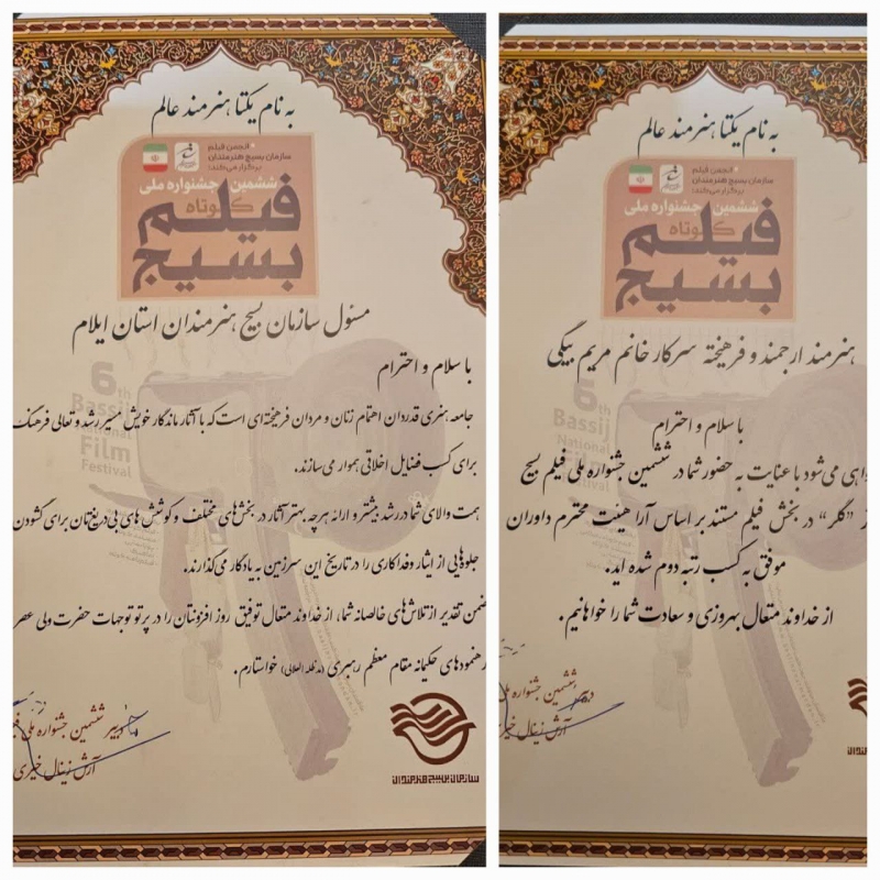 یاسر بیگزاده مسئول سازمان بسیج هنرمندان ایلام با بیان این خبر گفت: در مراسم اختتامیه این جشنواره، سرکار خانم مریم بیگی از فیلمسازان استان ایلام موفق شد در بخش فیلم مستند و با اثر «گُلِر»، مقام دوم این جشنواره را کسب نماید.